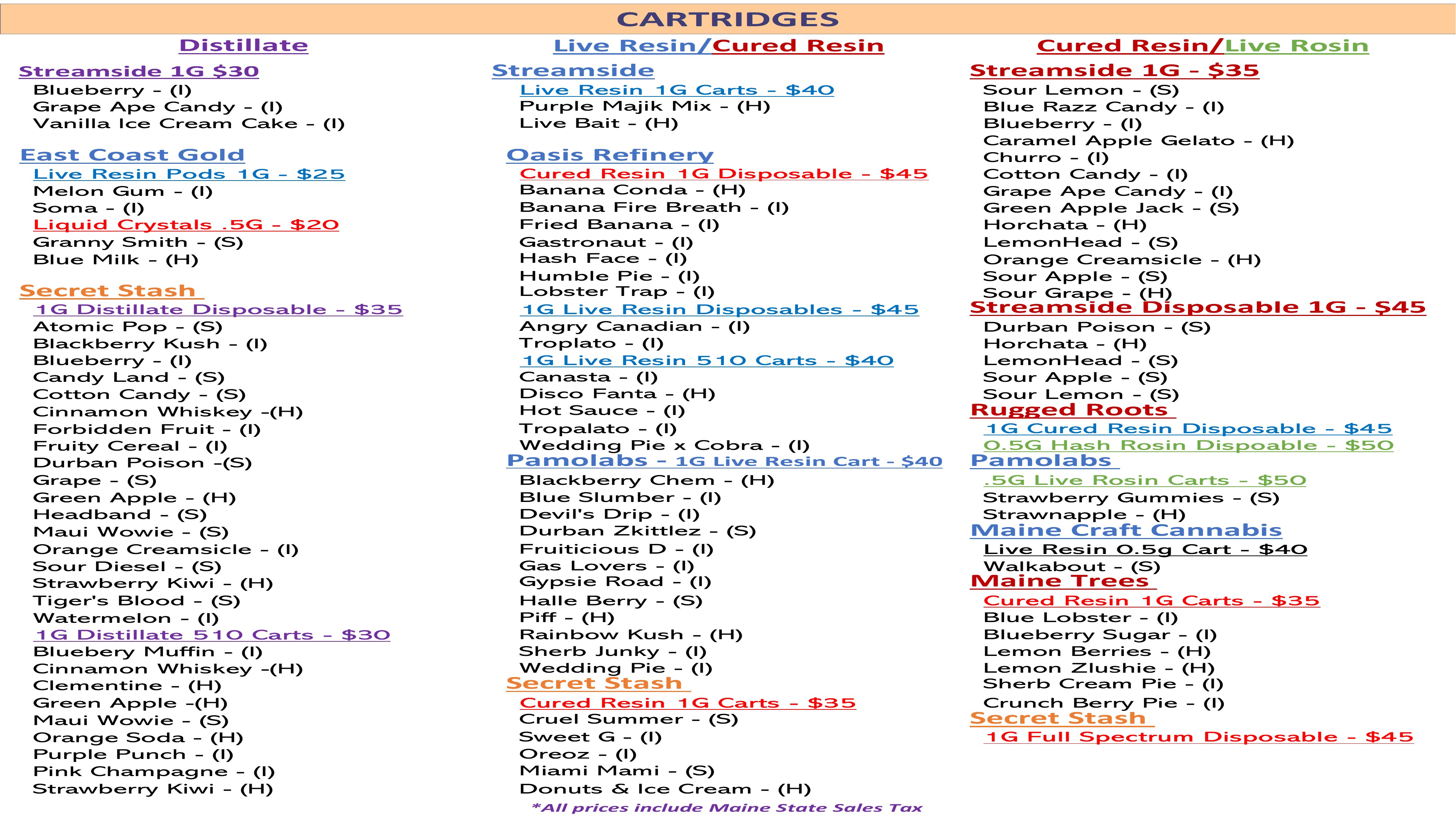 Maine Trees 1G Distillate Carts Sold out (they have been discontinued).