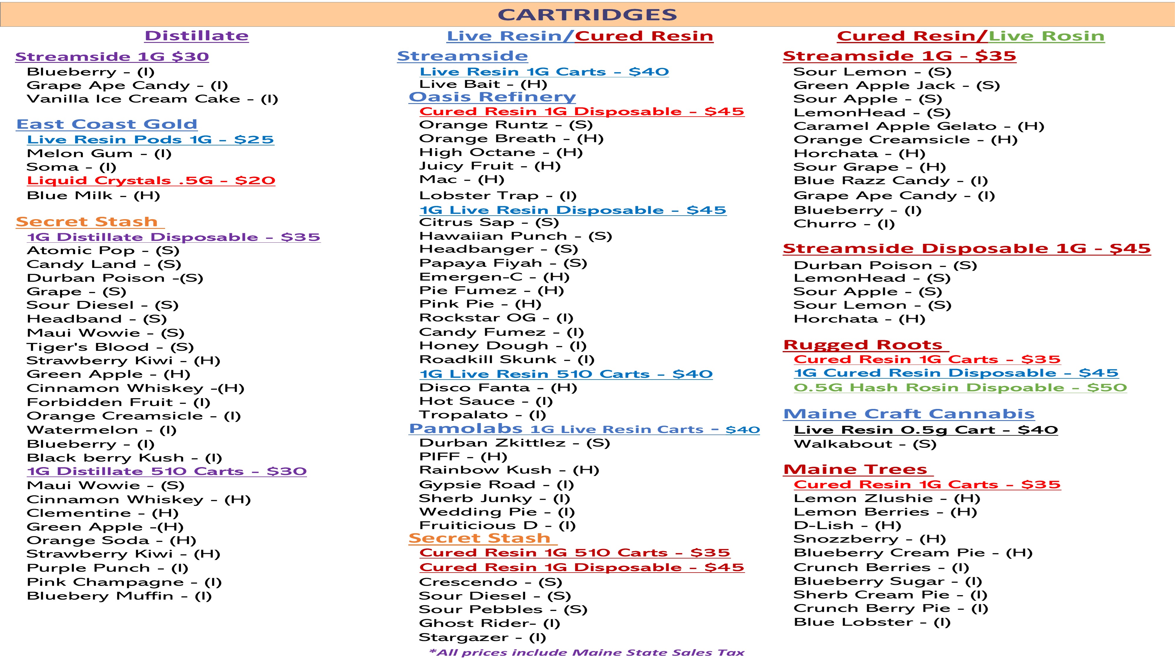 Secret Stash 1G CR Dispo- Crescendo, Ghost Rider, Sour Diesel, Sour Pebbles and Stargazer.