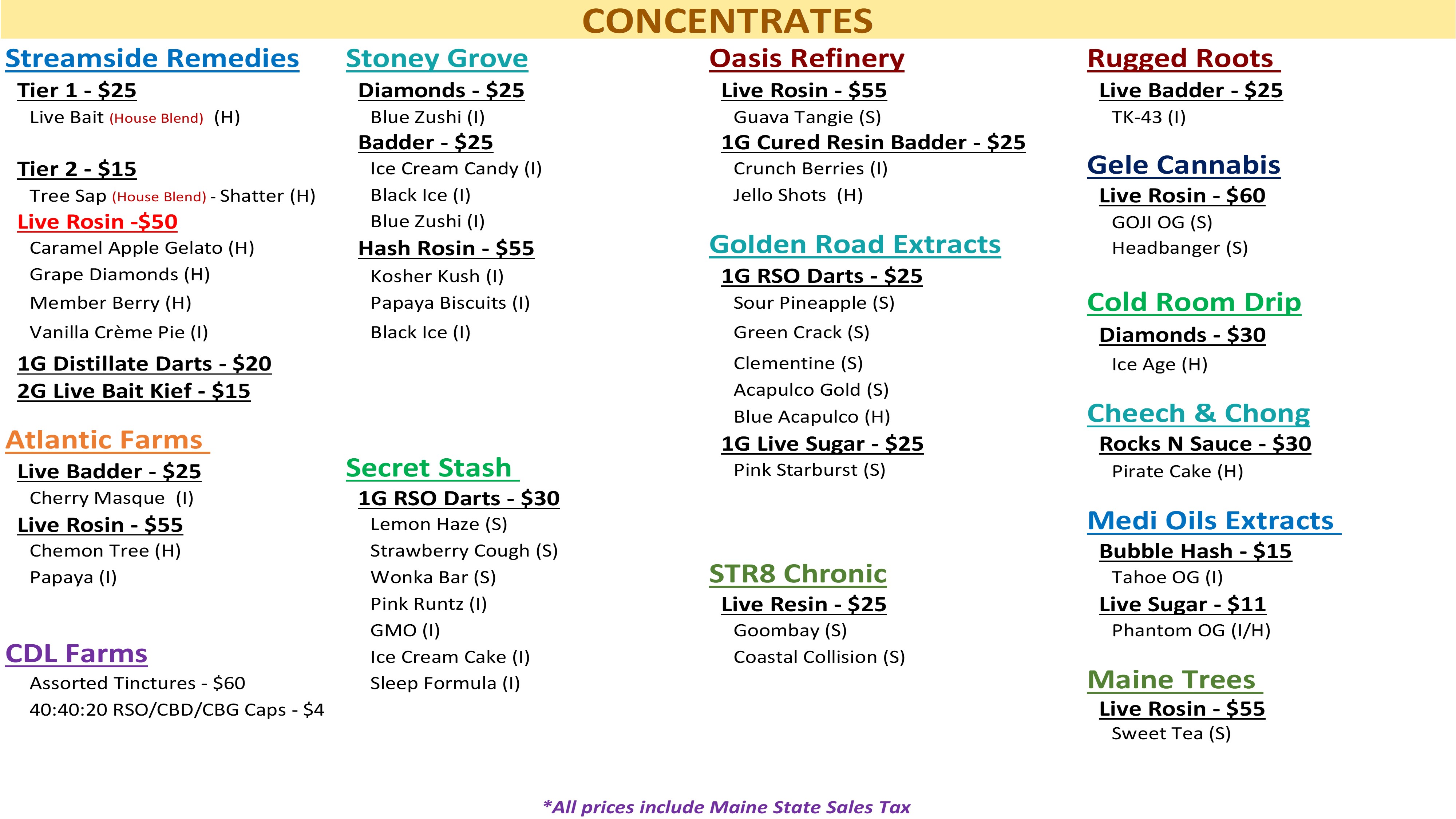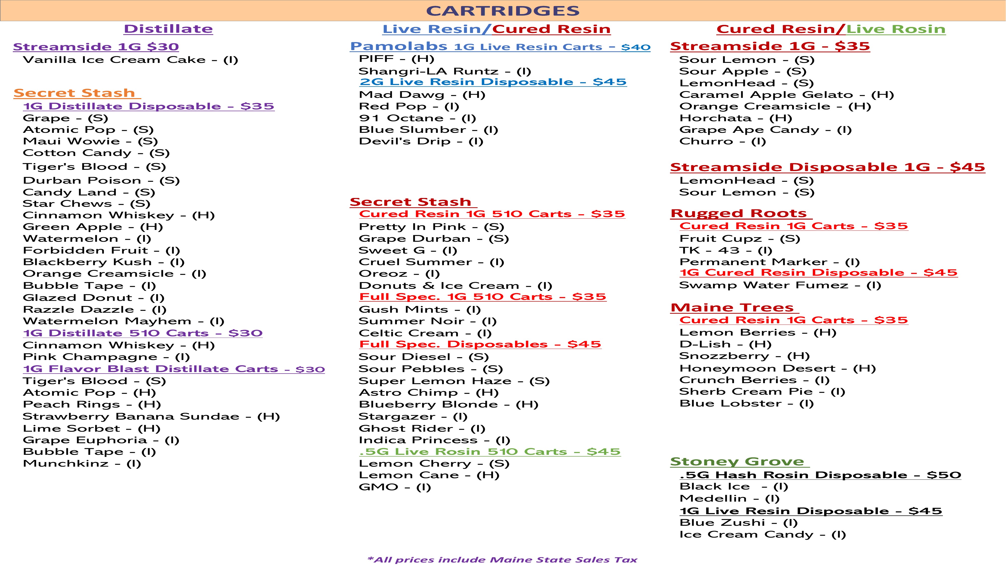 - Secret Stash 1G RSO Darts- Wonka Bar, Strawberry Cough, Lemon Haze, Pink Runtz, Sleep Formula, Ice Cream Cake and GMO.