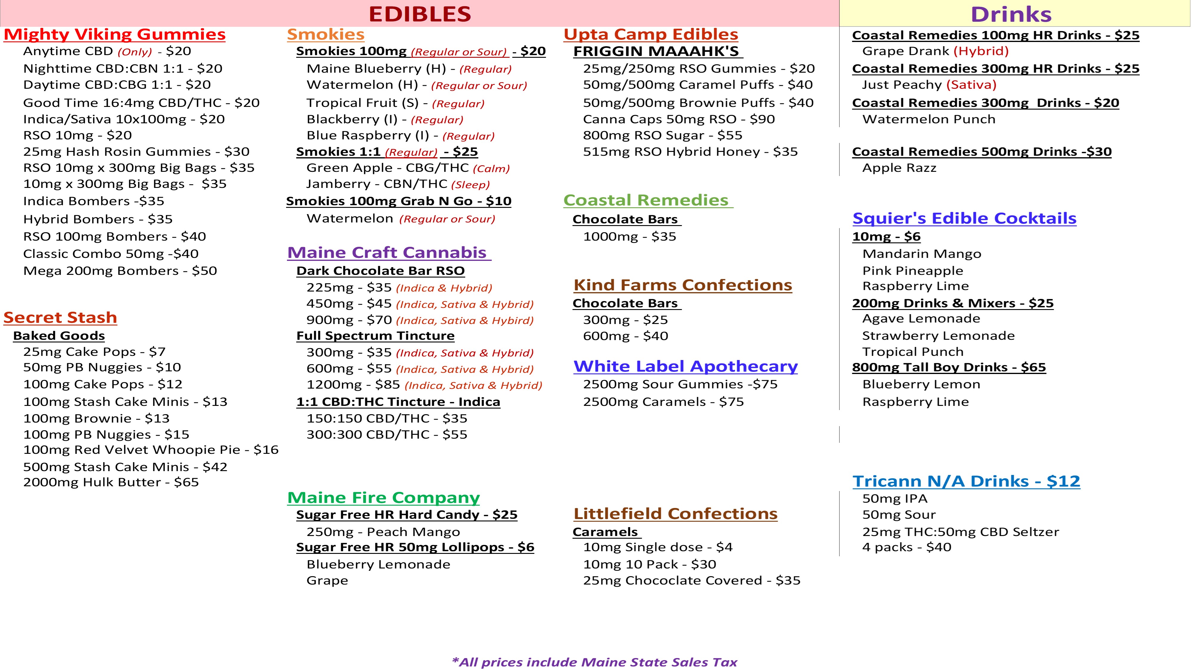 - Mighty Viking Edibles- 100mg/500mg Sativa Bombers, 10mg Sativa Blueberry Pie gummies.